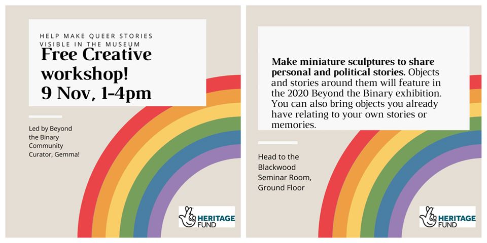I delivered a miniature sculpture-making session using clay and other materials as part of the Beyond the Binary project.